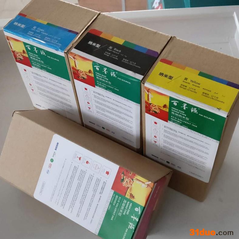 百墨源 InkSource 纳米型弱溶剂墨水 特点: 一**进口原料,低碳环保,流畅性好。 二、适合连续打印,独特配方,不堵喷头。 三、干燥速度适中,兼容性好,耐候性高。 四、专业校色处理,色彩鲜艳,还原性好。
