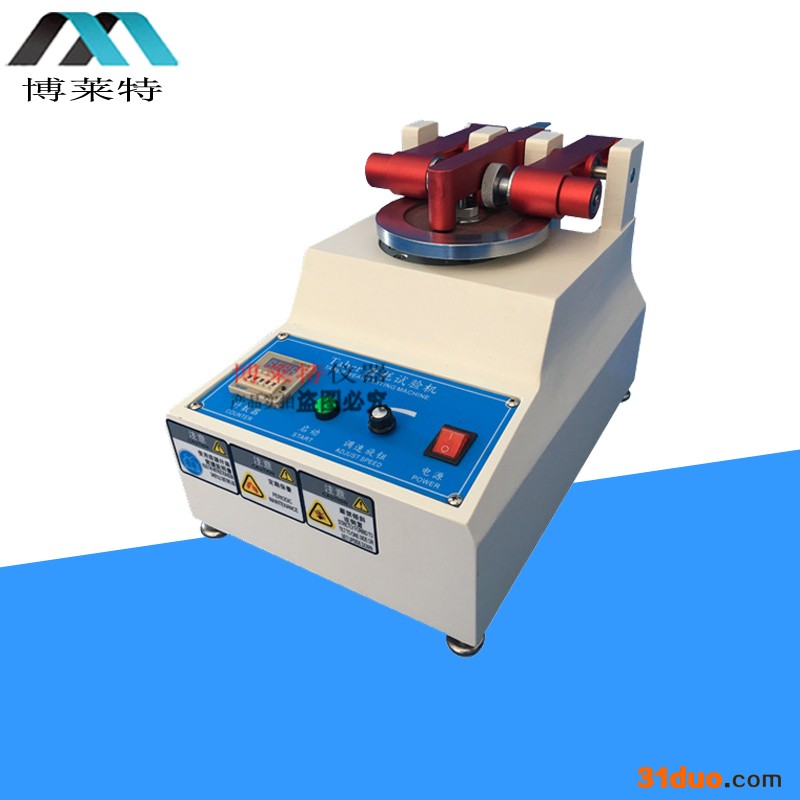 本机适用于皮革、布料、涂料、纸、地砖、合板、玻璃、天然橡胶等到耐磨试验,方法为用标准切刀裁取试件,用规定型号的砂轮,
