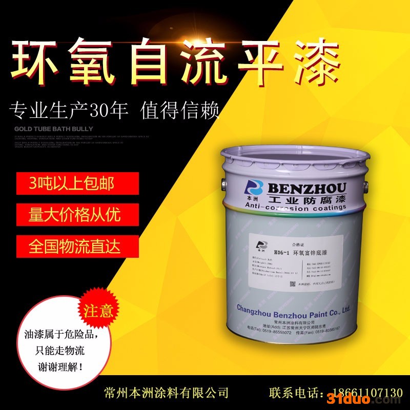 环氧自流平漆 环氧自流平漆(Epoxy self leveling floor paint)由环氧树脂、着色颜料、体质颜料、助剂、溶剂等与固化剂配套组成。 又名:环氧自流平地坪漆、环氧无溶剂自流平漆、薄涂型环氧自流平地坪漆、载重型环氧自流平地坪漆、耐磨型环氧自流平地坪漆、重防腐环氧自流平地坪漆。