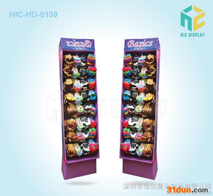 量身定制袜子等服饰用落地式挂钩纸货架|环保瓦楞纸展示架陈列架