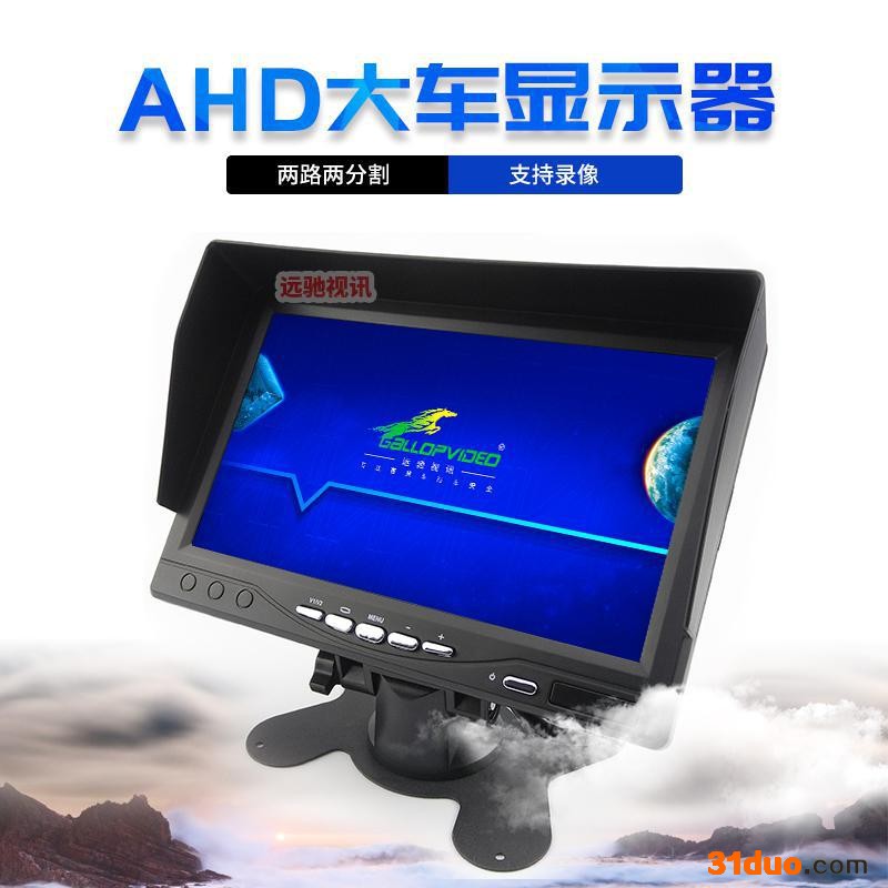 产品介绍: 远驰视讯全新推出的7寸车载显示器,开机自动录像,内置2画面分割同屏显示功能,前后双路AHD无光全彩摄像头,本行车记录仪,具有前后同时录像,倒车自动切换后视摄像头全画面,倒车结束后,自动返回到前后双屏同显状态; 采用全志T3方案车规级视频处理芯片,处理能力强,高清晰度录制存储、响应快、运行稳定。内置缓存技术,读写TF卡速度20MB/S,杜绝死机重启、漏秒、罢工等不录像的状态。 采用全新的H.265高清格式,使图像更清晰,内存占用小,录像时间更长久; 同时采用了防水等级IP68的AHD无光全彩夜视摄像头,并对日夜兼容、隧道通过等道路场景进行优化,内置光线补偿、强光抑制、去噪等图像数字处理算法。告别路灯光晕、车灯过曝、逆光动态范围劣化、明暗切换生硬等行车记录仪常见成像问题。 可根据客户需求定制图像信息叠加参数(OSD),将商标、图案、数据等内容叠加到录像文件和实时视频流中,定制开机画面LOGO,(避免纠纷,需客户提供商标使用授权后远驰进行授权修改软件) 适用于多种应用环境,如行车监控,公交车上下门监控 大巴车/中巴车/旅游车监控,楼房监控,船舶监控,倒车监控等,广泛应用于汽车、商务车、公交车、校车、大小型货车、货柜车、卡车、工程车、消防车、救护车、垃圾车、路面清扫车、水泥搅拌车、叉车、挖掘机、起重机、农用车、联合收割机、轮船等各种交通工具和大型机械设备。
