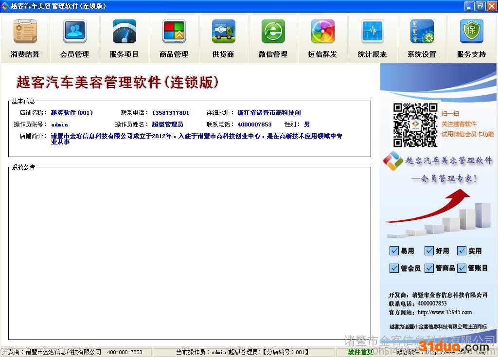 越客汽车美容管理软件是一款针对于广大汽车美容店对于客户的管理,客户的需求,客户的信息处理的一款极为方便,操作简单,功能强大的一款汽车行业专业软件。 r 越客汽车美容管理软件囊括了现今基本上汽车管理软件所具有的功能处理方式。以先进高新的技术,**的售后客服态度为大家所知的越客汽车美容管理软件是由诸暨市金客信息有限公司自主研发的一款汽车行业软件。 r 越客汽车美容管理软件的功能是是十分强大的。有会员消费、会员管理、事件提醒和到期提醒、、统计报表、会员卡设计、商品设计、云备份等一系列在网络管理软件方面必须具备的基础功能。 r此外,越客汽车美容管理软甲一直秉承着其他网络软件公司所不具备的**客服售后态度和能力。 r近期,越客软件推出新一波优惠高潮。原价1200的汽车美容管理软件(单机版)先降价为800元/套+1000张会员卡+一个**+一个配套锁。机不可失时不再来!