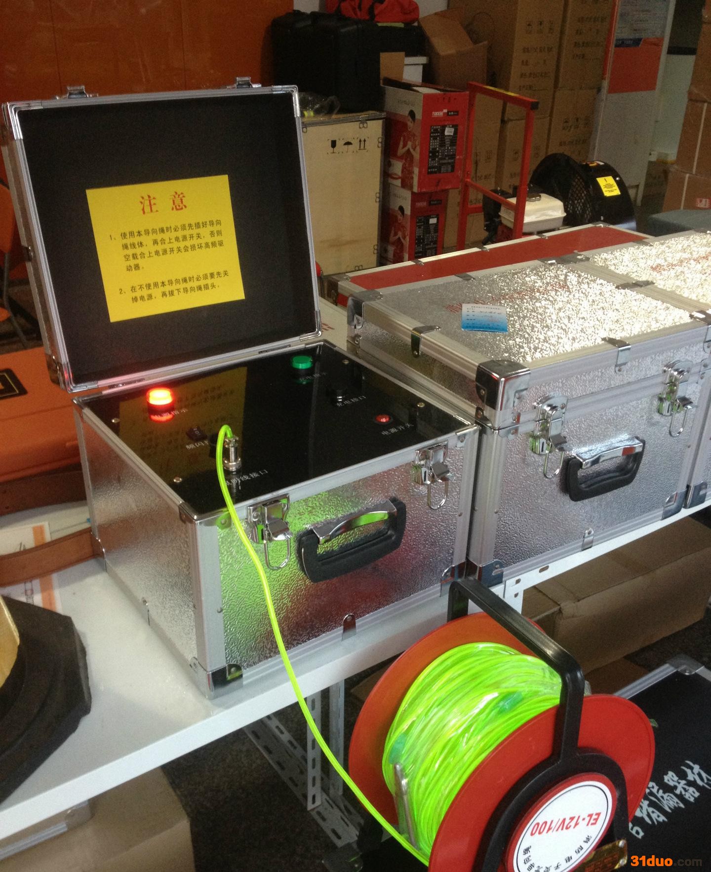 救援发光绳设备使用说明rrr rrr rrr 一. 包装箱物品rrr 50米线轮1个,AC220V/110V充电器1个.rrr rrr 二. 使用方法rrr 1. 取出线轮。rrr 2. 打开开关判断是否有电(常亮----关闭----闪动)。rrr 3. 发光状态下可以收放发光绳。rrr 4. 临时固定发光绳可以使用塑料自扎带,如塑料自扎带反扎,其可以反复使用,同时便于拆卸。rrr 5. 收卷时请使用手柄,排列整齐收回,同时擦干水与杂物,便于下次顺利放出。rrr rrr 三. 充电方式rrr 充电时首先使线轮开关处于关闭状态rrr 1)连接AC220V/110V充电器,满载为连续充电3-4小时。(建议使用)rrr rrr 四.技术指标rrr 发光颜色为蓝-绿色;重量10公斤(含包装);50m功率15w;满载电,常亮使用时间6小时,闪动使用时间8小时;可视距离100米**大承受拉力40公斤;无电夜光使用时间1-3小时;锂电池充放电次数大于500次(可以更换);发光绳使用寿命3000小时;电池满载电干燥保存30天,电存量30%;使用条件DC12V;输出频率1500Hz;电池使用极限温度: -20℃到 +60℃;rrr rrr 五.注意事项rrr 线轮部分不可以在雨水中长时间使用,存放时应保持干燥.rrr 弯折小于45度或超出承受拉力,易使发光线短路不亮;rrr 请勿拆卸端头及内部装置,易使防水性能失效,并改变拉力。rrr