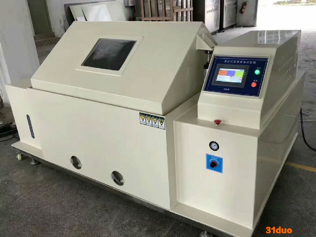 r 盐水喷雾试验机是一款可以把氯化钠(简称工业盐)兑换成盐水哦经过试验机的特殊处理形成喷雾式把雾水形成的盐雾洒落在一些易锈易腐蚀的样品上做防锈试验及抗腐蚀试验,如钥匙、门锁、手表、耳机、等五金配件,包括、涂料、电镀、有机及无机皮膜、防锈处理、阳极处理、等耐蚀之产品测试。是工业行业常用到的一款试验机。rrr 试验机特点:rrr 一、盐水喷雾试验机的喷雾方式,可选择连续式喷雾或可程式喷雾方式。rrr 二、本要具有自动除雾装置,可清晰观测到试验机箱内的样品rrr 三、精密玻璃喷雾由特种玻璃制成,使用4000 小时保证无结晶阻碍落雾均匀。rrr 四、喷雾塔采用锥形分散器,具导雾气,均匀落雾及调节落雾量。rrr 五、大型机器试验密封盖,采用气驱缸自动升降方式,防止雾气外泄rrr 六、雾气密封槽,利用水密封方式,采用自动升降、加水方式防止雾气外泄rrr 七、整台试验机采用进口的PVC 板制,内部采用先进环带的立体补强技术。结构强实,永不变形,耐酸碱,耐高温永不老化.rrr 八、采用自动/ 手动加水系统,具有水位不足时能自动 / 手动补充水位的功能,试验不中断,水位不足警示显示。rrr 九、进口温度表采用数字显示PID 自动演算控制温度、高温定镀白金测温探头,试验不中断,水位不足警示显示。rrr 十、实验室采用蒸气直接加温方式,升温速度快,待机时间短,可设定时间范围:0.01-9999 时。rrr 盐水喷雾试验机技术参数:rr