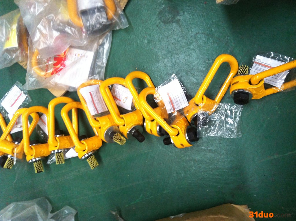 YOKE 旋转吊环、旋转吊环螺丝、旋转吊环螺钉、起重吊耳、进口吊环、进口起重吊环 旋转~跳跃~我不停歇~~YOKE旋转吊环,满足您根本停不下来的脚步!不论是水平360°,还是垂直180°都没有任何问题的转转转~ 科索比的小田祝愿大家工作顺利!~旋转吊环它转转转~蓦然回首,那人却在灯火阑珊处~**像选择吊环模具,转了一圈,看来看去,比来比去,选来选去,您会发现还是科索比的较值得信赖! 产品概述: 1、起重吊环所采用的高强度韧性特殊合金钢锻造而成均经过调质热处理。 2、YOKE旋转吊环逐件按照工作拉力的2.5倍进行静载验证测试。 3、抽检以1.5倍荷载进行20000次疲劳试验测试。 4、所有销轴进行测试,确保每个YOKE旋转吊环相同的硬度品质。 5、起重吊环均可360°全周旋转,且具有180°支点绕轴旋转功能。 6、起重吊环垂直翻转达到较大限度,限定量较大角度90°。 YOKE拥有稳定严格的生产制造设施,从原材料到产成品每个制造阶段都配备有质量控制措施。YOKE的质量符合ASTM A95298以及欧洲委员会标准EN1677关于80级钢合金链条及组件的有关标准。YOKE是一家通过ISO9001认证的公司,并通过SABS,ZU,ABS以及DNV等主要国际机构的类型认证。YOKE已经获得CNLA认证 中国实验室认证,这**确保了高质量的研发工作以及先进的产品工艺。
