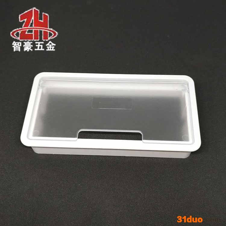 桌面开孔:158*78mm 材质:塑料 表面处理:沙银 白色 + 透明盖 品牌:智豪 型号:ZH008 适用范围: 电脑桌,办公桌,家具 包装: 1个/胶袋,200个/箱 价格 白框透明盖 ¥2.28/个 沙银框透明盖 ¥2.45/个 外包装是坚实的牛皮纸箱