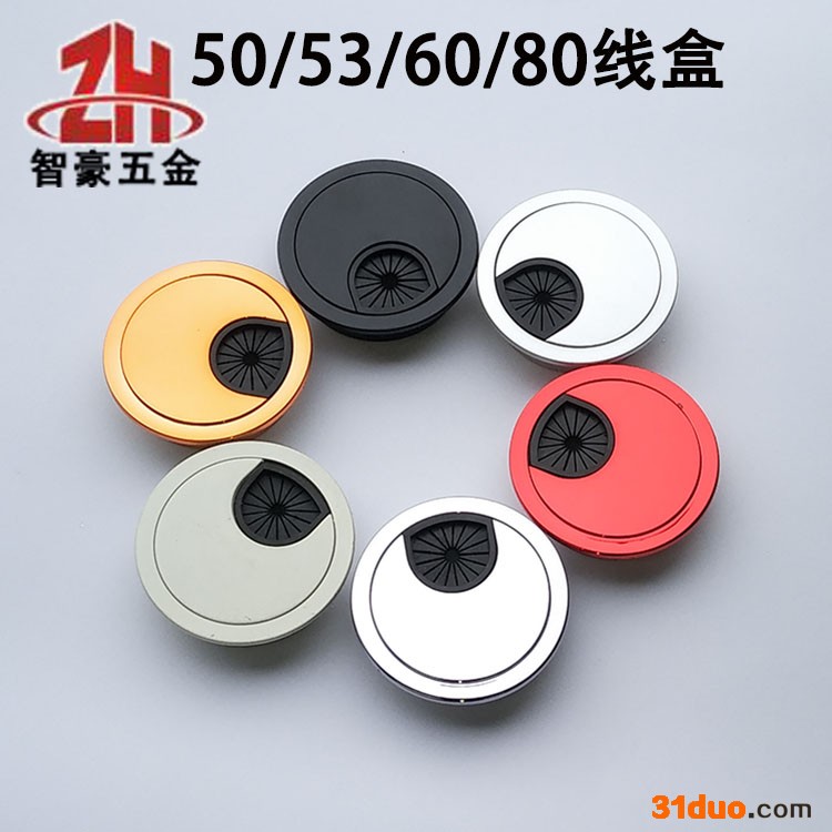 rrr 规格:50/53/60/80mm rrr 材质:塑料 rrr 表面处理:沙银 亮光铬 黑色 白色 亮光香槟金 金色 rrr 可定制指定的颜色,具体请与掌柜联系 rrr 品牌:智豪 rrr 型号:ZH003 rrr 适用范围: 电脑桌,办公桌,家具 rrr 包装:1个/胶袋,#50/53:1200个/箱,#60:600个/箱,#80:500个/箱 rrr 价格: #50 #53 #60 #80 rrr 黑色 ¥0.46 ¥0.47 ¥0.48 ¥0.95 rrr 白色 ¥0.48 ¥0.49 ¥0.51 ¥0.98 rrr 沙银 ¥0.54 ¥0.55 ¥0.58 ¥1.15 rrr 亮光铬 ¥1.06 ¥1.08 ¥1.15 ¥1.80 rrr