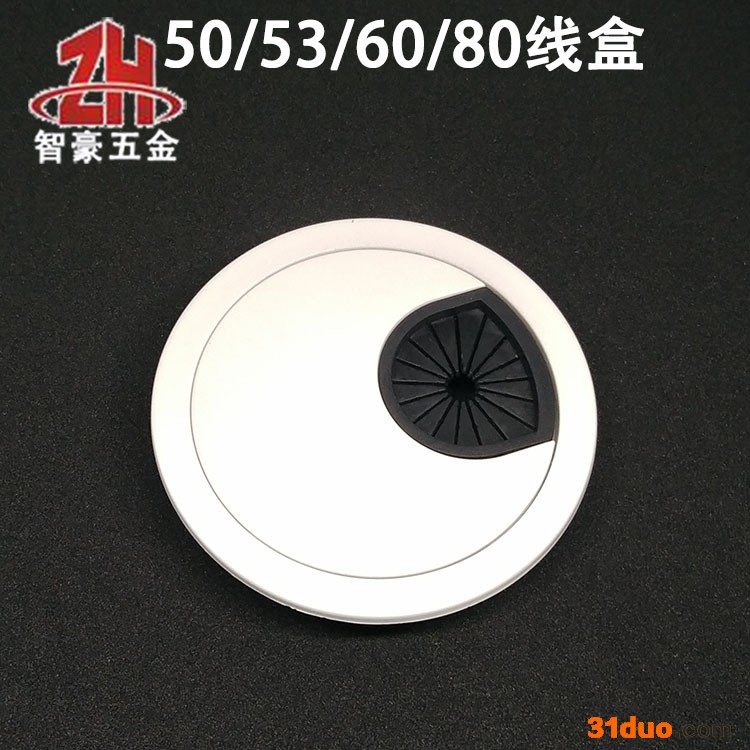 桌面开孔:50/53/60/80mm 材质:塑料 表面处理:白色 品牌:智豪 型号:ZH001/002/003/004 适用范围: 电脑桌,办公桌,家具 包装: #50/53 6个/胶袋,1200个/箱 #60 1个/胶袋,600个/箱 #80 1个/胶袋,500个/箱 价格:#50 ¥0.48/个 #53 ¥0.49/个 #60 ¥0.51/个 #80 ¥1.05/个 外包装是坚实的牛皮纸箱