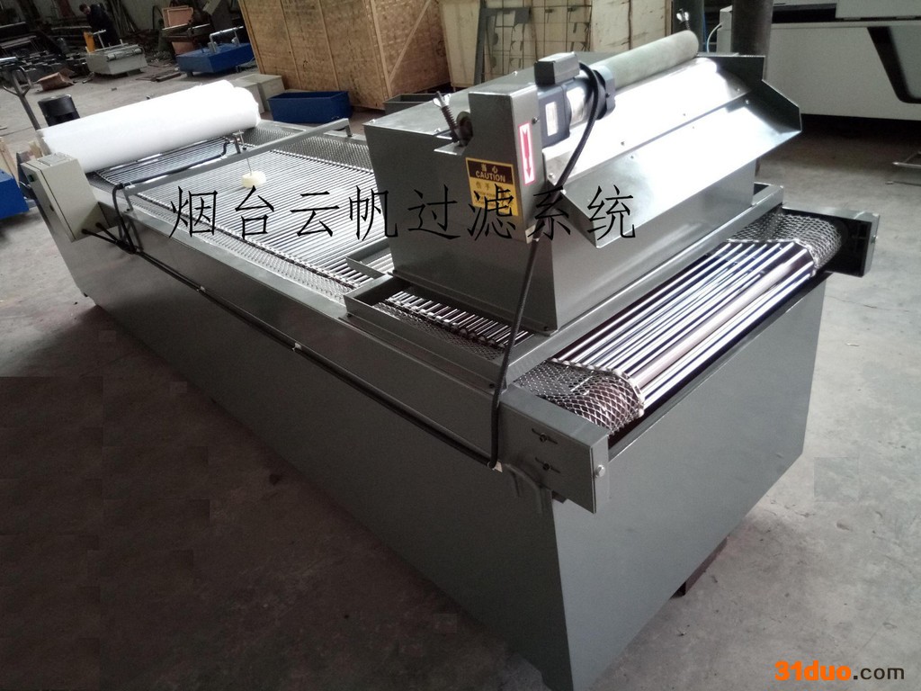 r r r 粒子过滤精度: 20r- 25 μmr r r 冷却水泵流量: 接近. 200 l/mr r r 水泵压力:4 barr r r 乳液浓度: 4r- 5%r r r 乳液类型:乳液供应商决定r r r 如果环境温度超过推荐的工作温度,将考虑用外置的冷却装置(或用于以后安装),例如:生产线冷却水或制冷装置上使用的换热器。r r r 这套装置应包含泵和供应乳化液到剥皮机的管道。r r r 过滤装置含以下配置:r r r 水箱沉淀物(沉淀物,重粒子)用铰链式带式运输机运到垃圾箱r r r 磁性分离器r r r 滤纸型过滤装置(纸带式过滤器),包含泵及水箱r r r 过滤模式:自动r r r 其他可选装置:r r r 乳液混合/配料装置r r r 撇油装置r r r 外部冷却系统准备装置(80 kW热交换器,位于水箱里面,用于水冷却)r r r 电气控制器r r