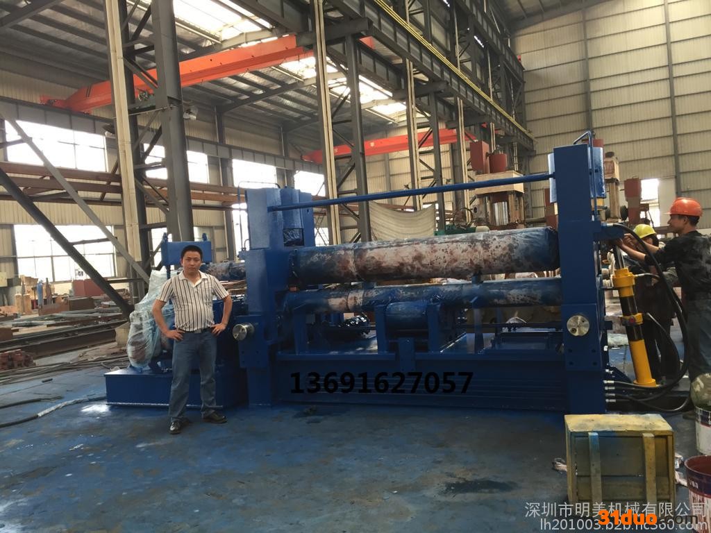产品介绍: 船用三辊对称式卷板机结构型式为三辊对称式,上辊在两下辊中央对称位置作垂直升降运动,通过液压缸内的液压油作用于活塞杆而获得,为液压传动;通过特殊设计减速机分别带动全滚动轴承的两下辊作旋转运动,为卷制板材提供扭矩;在下辊下部设有多组托辊,以提高下辊的刚度,并可进行垂直调节;在上辊的上部设有刚性大梁,在大梁与上辊之间设有多组托辊,以提高上辊的刚度;适用于超宽圆弧形零件的卷制。 三辊对称式船用卷板机关键技术及创新点: 全密闭设计,防止灰尘进入;
