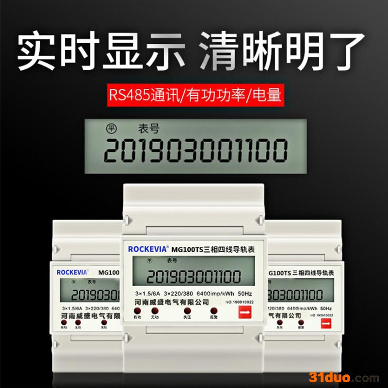 威盛MG100TS三相四线电子式导轨式交流电能表带智能RS485通讯数显仪表三相四线导轨表导轨电度表