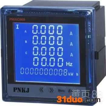 PMAC669系列网络监测仪表用于配电系统的连续监视和控制,可测量三相电压、三相电流、总有功功率、无功功率、分相有功功率、无功功率、视在功率、功率因数、频率、四象限电能、4费率电能计量及2-31次谐波含有率和总谐波畸变率THD。并具有变送模拟量输出4-20mA功能;D0开关输出可用于越限报警或远程遥控;Di开关量输入可用于监视开关的状态。所有数据都可以通过RS485通讯口用Modbus协议读出。该系列仪表将高精度的电量测量、智能化电能计量与简单的人机界面结合在一起,操作简便,适用于对电力品质、电力安全及自动化要求较高的场合。