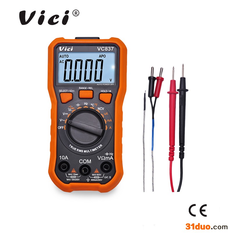 维希VICI VC837真有效值数字万用表 NCV照明背光 6000显示自动量程多功能数显仪表