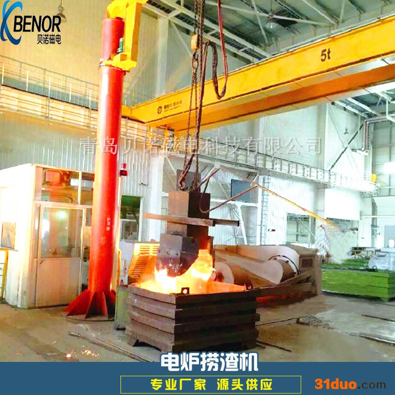 rrr 青岛贝诺磁电科技有限公司生产的BN系列电炉捞渣机由悬臂吊系统、液压系统、安全应急系统、捞渣系统和电气控制系统组成,可适用于5t~30t的电炉捞渣作业。