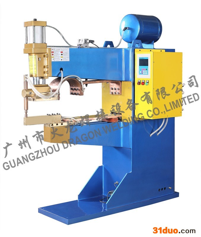 MF系列中频逆变直流点(凸)焊机 r r r 整机特性 r r r 1、高质量、高效率的焊接能力,功率因数达98%,三相输入负载平衡,对用户电网的冲击大大减少,输出电流为直流,电流平滑,感抗为零,1000HZ的工作频率,时间控制精度为1MS; r r r 2、高强度的机体结构,刚性好,垂直式加压机构,导向采用直线导轨,随动性高; r r r 3、采用高速微处理器,运用智能最优算化法,液晶屏界面,可存储60套焊接规范,具有中英文切换显示,提供外部BCD码调用接口,系统故障自动诊断报警等功能; r r r 4、特别适合焊接导电性较高的铝、铜材料,比较厚的工件。广泛适用于航空、航天、汽车、压缩机及其他领域的高端产品的焊接要求。 r r r r r r r r r 主要技术参数 r r