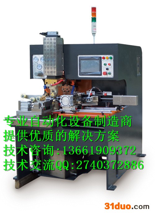 rrr 此设备针对种中小型大批量焊接件设计,常用焊接产品有:汽车配件 滤清器螺纹盖板,旁通阀,锁具配件等,选用台湾产高精度分割器,rrr 准确快速,工件放置情况上下检测,避免误焊接,可焊接各种不同材料工件,可根据用户工件订制焊机。rrr 特点:rrr 1、生产效率高:焊机在焊接时可同步进行上下料,缩短时间,提高工作效率,适合进行大批量生产的企业rrr 2、操作安全:操作者不直接在焊接位工作,直接提高的操作者的安全性。rrr 3、自动化程度高:可根据要求,另配自动送料机,实现全自动焊接。r