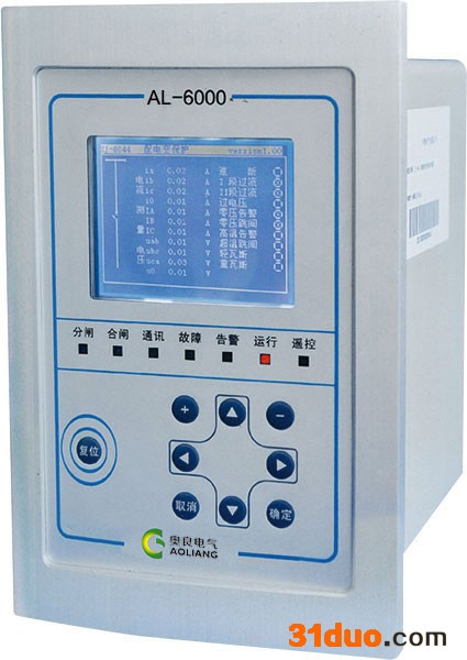 AL-6000 系列微机保护测控装置适用于 66kV 及以下电压等级变电站、发电厂等,用于配电室的进出线保护、变压器保护、电动机保护、PT 并列及监测和备自投等。可集中组屏,也可在开关柜**地安装,全面支持变配电所综合自动化系统。 ◇适用于严酷的工业场所,如有强干扰的炼钢厂等。 ◇采用液晶循环显示电流、电压等所需的电气量,并且将保护动作的各种信息显示在屏幕上 ◇加强型单元箱体均采用密封式,内部屏蔽,可抗强振动,抗干扰性能强,能适应于特殊环境,可组屏安装也可以分散安装于开关柜上 ◇运行装置采用全悬浮式设计,CPU 采用 4 层电路板,能十分有效 地防止脉冲和浪涌的干扰 ◇具有记录** 100 条事件记录,并具有断电保持功能,信息可以在事件记录中查看 ◇硬件系统可扩展,模块类别少,功能强大 ◇装置具备四遥接口,并可实现远方修改定值和切换保护运行方式,具备 GPS 时钟或远方对时接口 ◇封闭型机箱,强抗干扰设计,适用于恶劣环境,可靠性高,符合 IEC 电磁兼容标准 ◇工作电源交直流两用 ◇超低功耗 ◇可实现远方定值整定和修改 ◇事件顺序记录并上传 SOE 事件 ◇超大屏幕汉字液晶显示,键盘操作