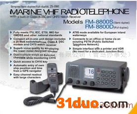 * FM-8800S是经济型的多功能一体机 * 包括一个25W VHF电话,一个Class A DSC和一个70信道的值守机 * 完全满足GMDSS的要求规范/CCS证书 * 如果您在使用VHF信道的同时,接受到DSC报警信息,FM-8800S会给出一个图形和声音的警告