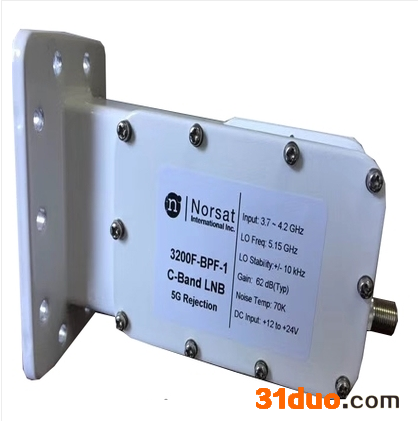 3200F/N-BPF-3内嵌滤波器高频头是Norsat为了抵御5G基站信号对 LNB地球站C波段信号干扰而推出的的低噪声下变频器(高频头)加上带通滤波器为 LNB通信提供稳定信号接收,同时在C波段3.754 - 4.20 GHz内抑制干扰 3200F/N-BPF-3内嵌滤波器高频头是Norsat提供优质的性能和可靠性在小的形式因素可能。 Norsat品牌作为业界的高性能微波器件供应商,有近四十年高频微波领域的制造经验,可以提供3年的保修期,让用户后顾无忧。
