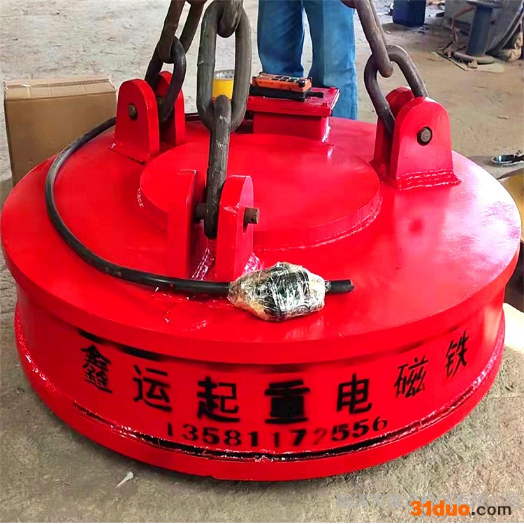 起重电磁铁又名起重电磁吸盘、电磁吸盘、电磁起重器,主要用于冶金、矿山、机械、交通运输等行业运钢铁等导磁性物料。也用作电磁机械手,夹持钢铁等导磁性物料,适用于搬运铸铁锭、钢球及废钢。其励磁可采用:定电压、强励磁和过励磁。