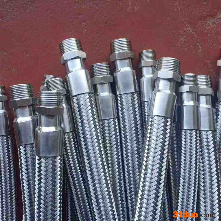 由于制作软管主要零件的材料是采用奥氏体不锈钢,因而保证了软管优良的耐温性和耐蚀性,软管的工作温度范围极广,为 -196—600 度,使用的软管按管道所通介质的腐蚀性选择适用的不锈钢牌号,即可保证软管的耐蚀性。 1.金属软管整体采用1Cr18Ni9Ti不锈钢材料制成,具有较强的耐腐蚀能力。 2.软管管体为薄壁不锈钢管体液压成形,具有较强的柔韧性、伸缩性、弯曲和抗振能力强、编织网套的加强保护、使之具有更高的承压能力。 3.软管两端的连接还可制成除螺纹、法兰标准之外的其他连接方式,方便连接和使用。