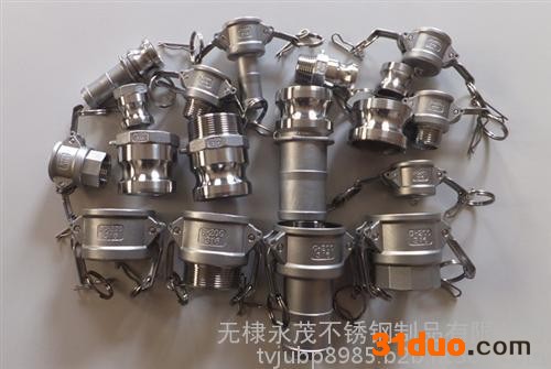 无棣永茂不锈钢制品有限公司是一家集开发设计,制造销售于一体的综合型企业厂家,公司主要产品有不锈钢快速接头、管件、船用五金、索具等产品。 凸轮式快速接头是我公司的主导产品之一,下面详细介绍下这种接头的技术参数: 凸轮式快速接头技术参数: 制造材料:304 316 铝合金 黄铜 塑料 公称通径:DN15-DN150mm 公称压力:16-64KG 适用温度:-20~150℃ 适用介质:水、油、气及某些腐蚀性液体。 适用范围:工业,化工,液化石油气,车船制造设备等。