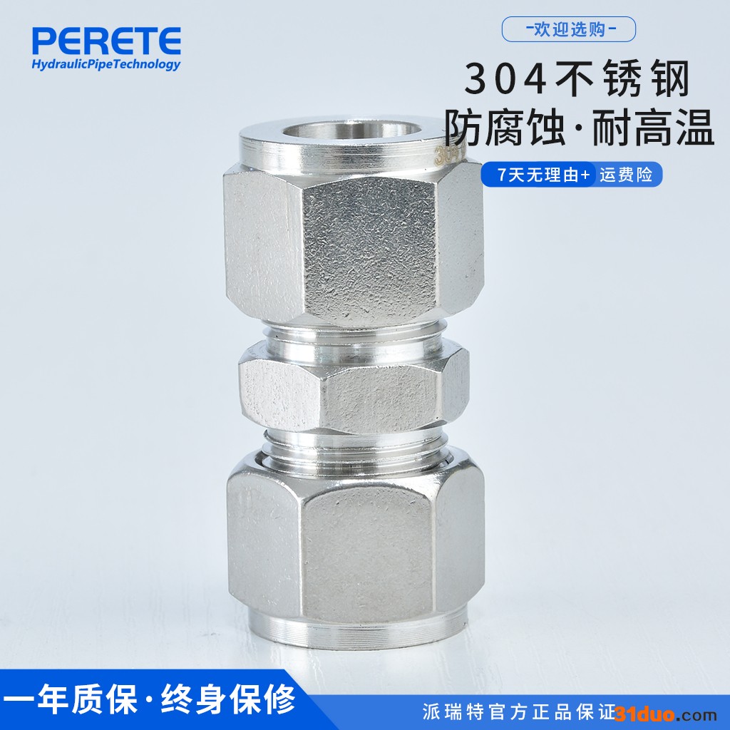 派瑞特CUA 双卡套接头 双卡套直通中间接头 不锈钢气管卡套接头 现货供应