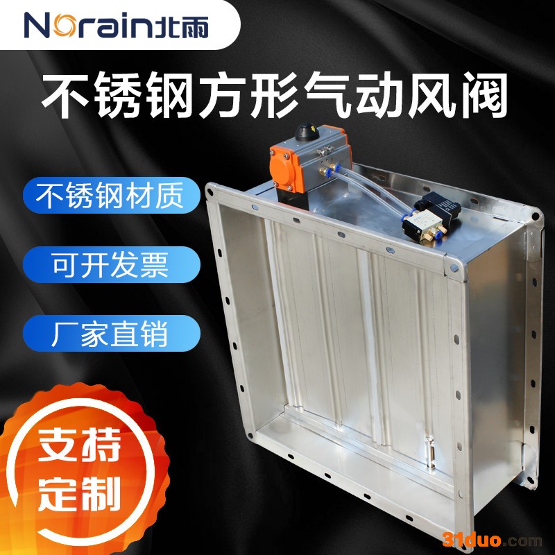 北雨 不锈钢气动风阀 方形调节阀 气动调节阀 瞬间开启关闭 镀锌板气动风阀 可根据尺寸定制