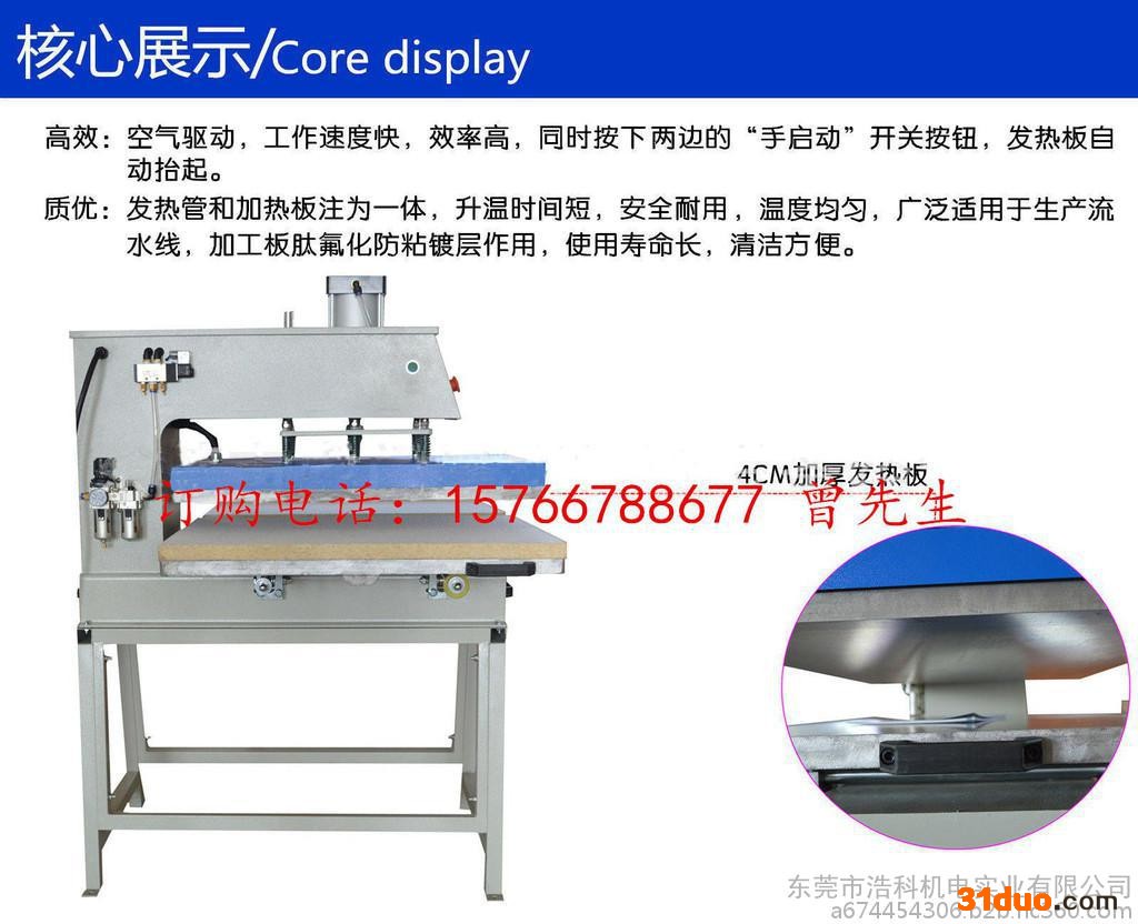 东莞市浩科机电实业有限公司是一家研发,生产,销售为一体的科技生产服务型企业。我们生产热转印烫画机,升华热转印机,匹布滚筒升华热转印机,全自动四工位烫画机,气动摇头双工位烫画机,气动下滑式双工位烫画机,气动抽拉式单工位烫画机,全自动单工位烫画机,手动摇头烫画机,手动开合式高压平板机,普通平板烫画机,多功能一体烫画机,烤帽机,烤杯机,烤盘机等等多款设备。