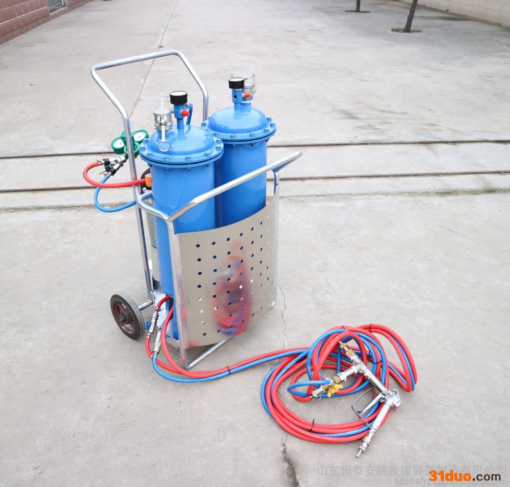 加料更加方便 喷涂流量大,快速堵漏火区 不需用电,可反复灌装 推车式、移动方便快捷 配备可拆装料桶,换料方便