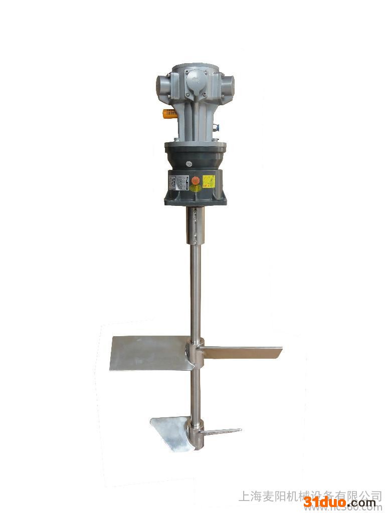 r 麦阳MAIYANG产品:气动搅拌机(防爆气动搅拌器,空气搅拌机)Air Motor Mixer用气动马达(气压马达,气功马达,风动马达,空气马达,气马达)Air Motor作驱动力。无级调速,操作简单。使用时安全防爆,长时间运转绝不会产生电火花,完全可以满足安全法规所规定的要求。可在易燃、易爆、高温、潮湿等特殊环境下连续安全工作。用于液--液,固--液,的混合,稀释。溶解,反应,乳化,分散,悬浊,防止沉降等搅拌目的。有不同功率、不同转速、不同形式(夹式,便携,可搬式气动搅拌器,平台式气动搅拌器,升降式(手动、气动)移动式气动搅拌机,的气动搅拌机(气动搅拌器,)满足您各种工况要求。适合1L,4L,20L,100L,5000L等容器。r