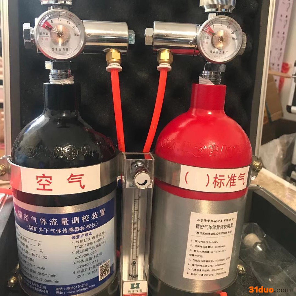 用来检定和校正瓦斯检测仪、瓦斯报警仪、甲烷传感器的携带式计量装置。适用于瓦斯仪表计量检定部门、厂矿、通风实验室及科研教学单位使用,由两个标准气瓶、压力表和玻璃转子流量计等组成,具有体积小、重量轻、安全可靠、操作简单、次级压力衡定、流量稳定、流量调节方便、易于维护、携带方便等特点。具有空气校零和甲烷气体校准标定双重功能。