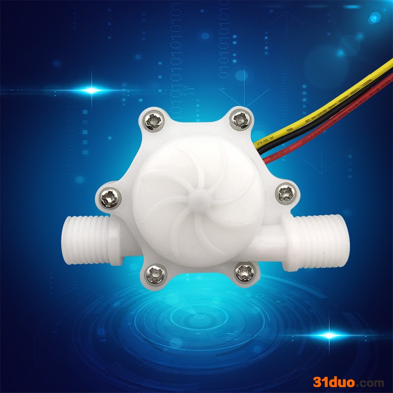 脉冲信号式水流传感器:水流量传感器(水流传感器、铜流量传感器、塑料水流传感器、流量变送器、脉冲式水流传感器,输出的脉冲信号与流量传感器流出的水流量成一定的线型比列关系,从而可实现水控管理或计量)和水流开关(流量开关)出水口的安装尺寸、接线端子的连接方式以及连接线的长短可根据客户要求定制,水流传感器现有管径有G1/4 、G1/2、G3/4和直插管(相当于G1/4)四种,按角度分可分为90度和180度两种,有塑料外壳和铜铸件两种材质,主要用于热水器、洗衣机、壁挂炉、电磁热水器、饮水机、净水机、R.O.机、U.F.机、咖啡机、热水卡机、水控机、控水机、啤酒机、电解制水机、能量水机、热泵热水工程、一卡通管理系统、智能水表IC水表、蒸汽设备、喷灌设备、校园卡售水系统、自助售水(贩卖)机、投币洗衣机、自动洗车设备、水处理设备、配水配药设备、冷却系统、循环系统、智能马桶(坐便器)、洁身器、机械设备、加热设备、仪器仪表、制药(制济)设备、喷雾(器)设备等。