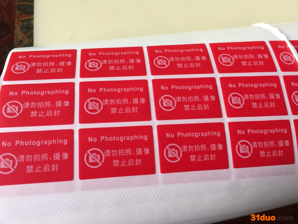 rrr 产品描述: rrr 在材料反面经特殊工艺加工形成一种字模(通常的字模有“VOID”、“OPENED”、已开封或客户指定的专版),当标签从承贴物表面撕起时,预先设定的字模或图案将会完整地留在承贴物表面,且无法复原。 rrr rrr 1.面材可根据印刷方式、承贴物表面等实际需要对双铜版纸,OPP、PE、PET、PO等进行选择,其基材可做成白色、哑银、光银或其它颜色,也可做成彩色效果 rrr 2.面材可根据印刷方式进行涂层处理,处理后的基材表面有良好的印刷与打印效果,耐化学试剂、耐磨擦。可节约打印碳带,减少打印机损耗;用胶印、UV、凹印等印刷方式印刷可表现出良好的印刷效果 rrr 3.承贴物表面,撕开后的基材与字模无法复原。 rrr 4.基材内预设的字模可以是文字、图案、也可是客户指定的其它专版图案。采用专版图案,极大地增强防伪功效,提升企业形象。 rrr rrr