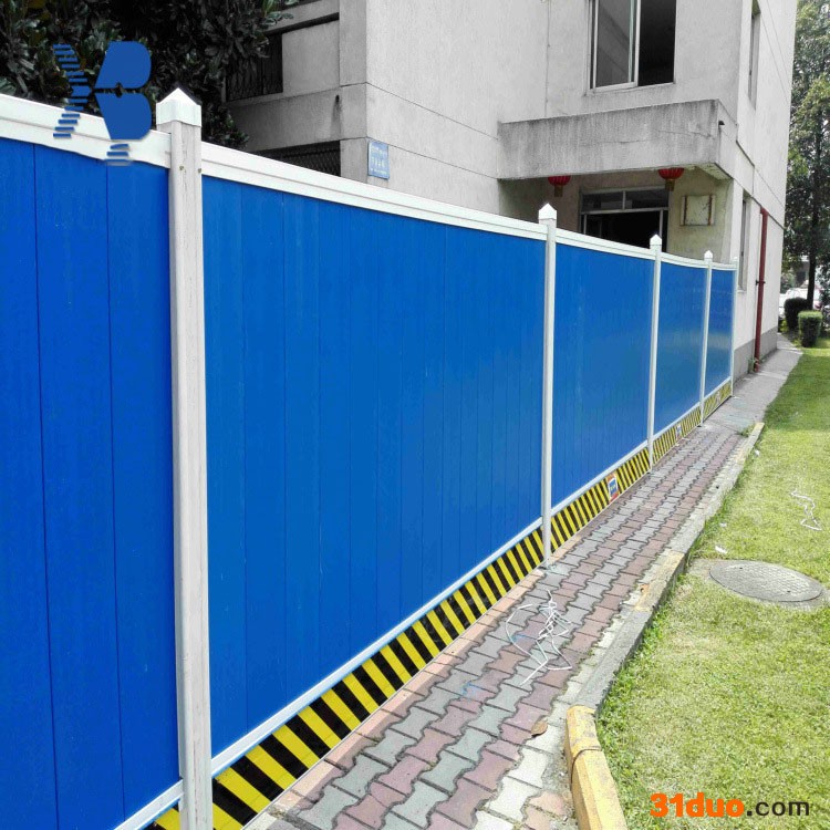 PVC围挡 由砖砌成的基座、立柱、上下横梁、PVC板组成,基座底部与地面用螺栓固定,外表可贴文化石,使其稳定性、美观性均好于传统围挡。安装简单,速度快,而且可重复多次使用。 1、主材和附件为塑料件。