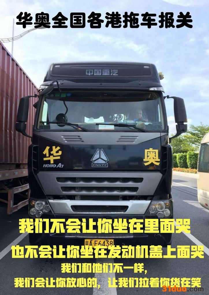 公司主营报关、拖车、仓储、代理退税等业务,[1]设置业务部、市场部、单证部、报关部、商检部、拖车部、仓储部、财务部、人事行政部等部门,全面的网络保证为客户提供安全可靠的服务和快捷的信息跟踪,充分深入广州、佛山、深圳等华南市场,为不同的货代、贸易公司、工厂等提供专业的服务体系和**满意的后勤保证。现已培养出了一批专业的业务人员、客服人员、操作人员,24小时为广大客户提供五星级的服务。“为全球企业提供物流解决方案”是华奥全体员工努力的神圣使命。 电话热线:叶经理18819314531