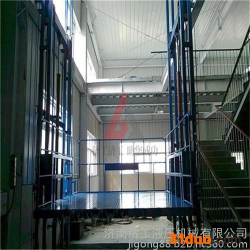 r导轨式液压升降货梯一种非剪叉式液压升降货梯,升降货梯的特点导轨式液压升降货梯采用重型链条传动,油丝绳做保险,导轨式液压升降货梯采用液压防爆油管,设有防止超载的安全装置、设有多重限位开关保护、设有开门断电保护装置、设有漏电保护装置、设有多层楼互动连锁,因此导轨式液压升降货梯的安全系数比普通货梯要高很多;
