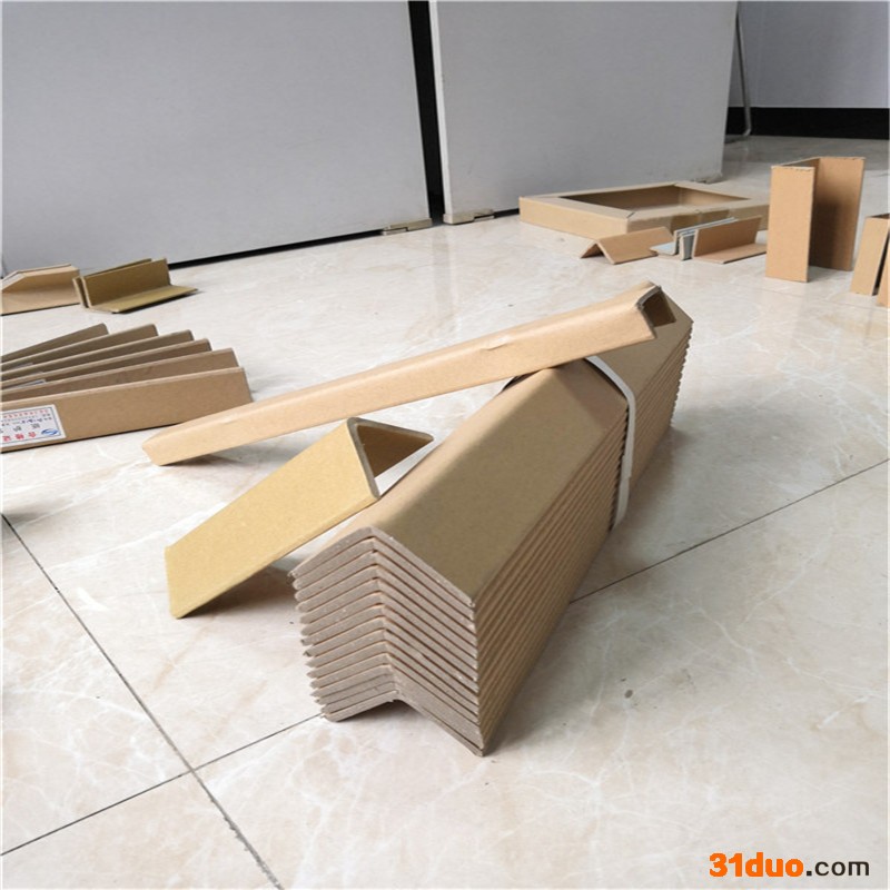 2、把货物固定在托盘上,可起到保护产品及其边缘的作用。 3、在搬运过程中可以保护和支撑产品。 4、可根据客户的不同规格及要求量身定做。它可以在货物的运输途中起到加固托盘的作用,从而避免货物在搬运、装箱、运输过程中对边缘的角落的损伤。它的材质是把硬纸板层压胶粘合而成,所以可以回收和再循环。并且在出口集装箱中可以免熏蒸,节省成本,得到广泛运用。 5、为托盘运输提供牢固的包装:纸护角能对装在托盘上的任何货物进行边角保护,它与打包带(或捆箱膜)一起使用,使原本松散零碎的纸盒,板材,金属管,电子元件等物品成为牢固的整体,防止货物倾斜、倒塌。纸护角的解除包装非常方便,只要剪断打包带或捆箱膜**行了。 6、预防外部损害:若使用纸护角仅是为了保护表面,而不需要加固时,厚度有3mm即可,其尺寸可按护角的尺寸来确定,为降低成本,还可以用一些小的护角保护因打包带过紧的边角损坏。 7、增加纸箱的叠放压力:将纸护角放在纸箱的四角,能增强纸箱的叠放强度,在受到外界冲击时起到缓冲作用,还可以将纸箱叠在一起而不会挤压里面的物品。