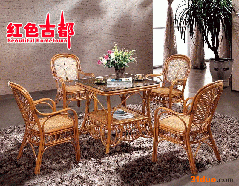 【宝贝名称】:红色古都藤编茶馆家具**特色生态 **藤艺家具休闲茶桌椅五件 【宝贝特点】:水曲柳框架,厚重结实,并且采用宽藤片编织,凉爽舒适,坚韧耐用,扶手和靠顶部分为藤枝排列和藤皮包裹,藤的韵味充分得到体现,冬天加上布垫,也温馨暖和。我们所有产品都是刚才生产一线下来打包发给你们。因为藤需要晒干后在进行编制,有些脆。你们拿到宝贝后用温水加盐搽一搽。基本5天内**会非常光亮漂亮。藤的韧性也会很好。大家超市里面看到藤觉得很漂亮,那时因为使用过摆设过,每天有人搽所以觉得很漂亮。【宝贝规格】:无扶手茶水椅:35*35*68cm。 藤制品属手工制作,尺寸会有偏差,望预知、理解。【宝贝材料】:印尼藤 宝贝用料是来自印度尼西亚的天然藤料。印尼藤坚韧饱满,不易爆裂,杂色少,是制作藤制品的一级原材料。藤是生长于热带森林植物。编织藤**长可超过185米。