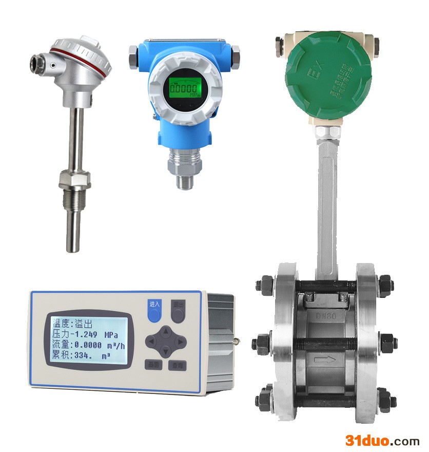 蒸汽涡街流量计用途、温度、压力变送器的成本等因素。对于计量用的则一定要采用温压补偿措施,并应选好、选对经验公式及配套的温度、压力变送器的精度,并进行正确、合理、认真的设置和调校。对于作显示用的仪表,应从生产要求的实际出发,该补偿的要补偿,不用和不能补偿的场合不补偿。该补偿的场合不采取补偿措施是不对的,但夸大温压补偿的作用也是不妥的。对于被测蒸汽流量的实际参数(温度、压力)与设计的参数相差不大时,可用下式进行密度修正。