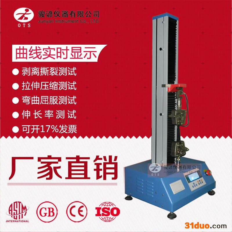 r r r 主要适用于各种金属和非金属材料的拉伸、压缩、弯曲、剪切、剥离、撕裂等的力学性能测试分析研究,具有应力、应变、位移三种闭环控制方式,可求出最大载荷、抗拉强度、弯曲强度、压缩强度、剪切强度、弹性模量、断裂延伸率、屈服强度等参数。根据国家标准及ISO、JIS、ASTM、DIN等国际标准进行试验和提供数据;r r r