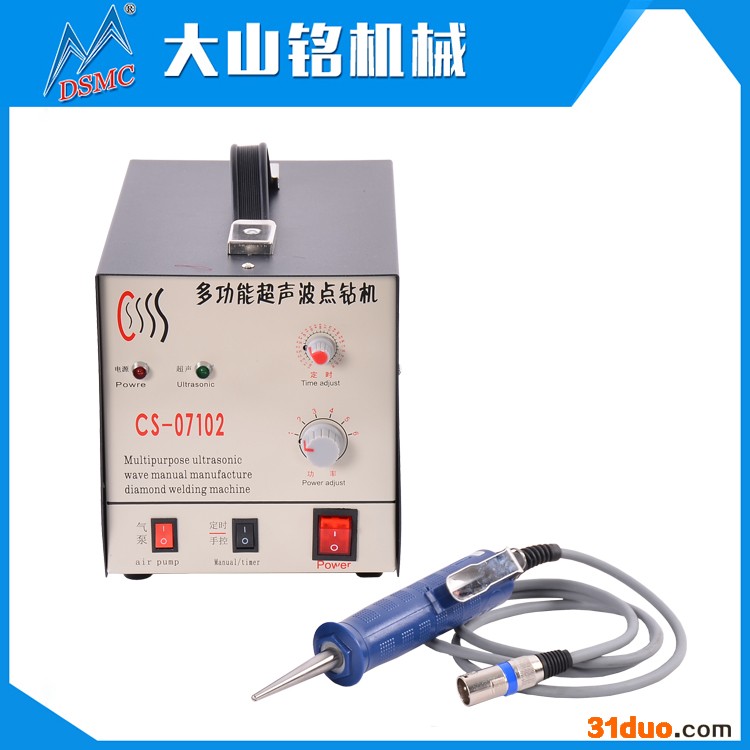 DSMC/大山铭 鞋面tpu材料定位机 无纺布点焊机 皮革定位机 超声波定位粘合机是利用超声波机械能与热能转换原理,把超声传给布料,使布料接触点自身迅速产生高温溶化其接触面的材料,两片布料会生成一个被粘合的小点,从而达到粘合定点的目的,方便衣车加工时不走位和提高生产效率。 机器用途广泛,可用于尼龙类面料打点粘合,小面积塑料件粘合等,制衣厂一般都是用这种超声打点机把小的裁片线定好位,再给车位加工的。 机器的接触点有不同形状: 1.圆形:尺寸有2MM,4MM,5MM,6MM 如果您的材料是比较厚的,比如是鞋材则请选择4-6MM的接触头,如果是比较薄的布料,比如泳装则请选择2MM的接触头。 2. 长方形:3*10MM,1*10MM(此尺寸可能替代刀片裁薄材料,速比较快) 应用行业: 机器广泛应用于服装行业、商标行业、制鞋业、汽车行业、塑胶电子、家用饰品行业等。