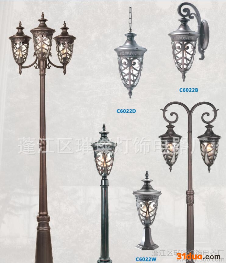 其设计风格多采用欧洲**的一些欧式艺术元素,加以抽象的表现形式。如:皇冠庭院灯 产品均为非标产品 ,可来图定做 ,但一律不退换货
