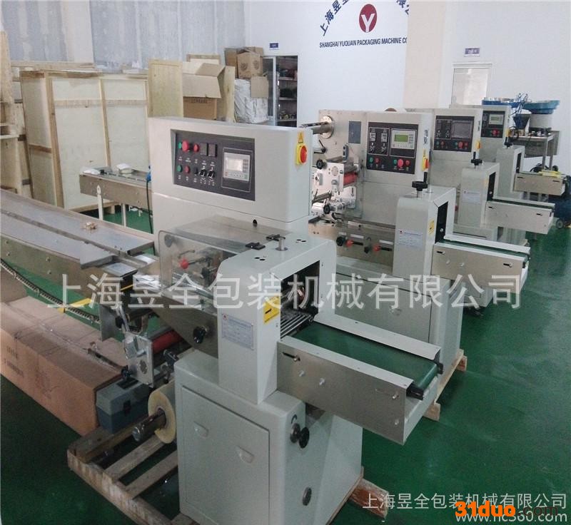 | 功能说明: 适合于饼干、米通、雪饼、面包、方便面、米粉、日用品、纸巾、卫生巾、工业零件、纸盒或托盘等各类有规则物体带插角大包装。 名称:YQ-450W YQ-600W 往复式枕包机 介绍: 一、主要性能和结构特点: 1.双变频器控制,袋长即设即切,无需调节空走,一步到位,省时省膜。 2.人机界面,参数设定方便快捷。 3.故障自诊断功能,故障显示一目了然。 4.高感度光电眼色标跟踪,数字化输入封切位置,使封切位置准确。 5.温度独立PID控制,适合包装材质。 6.往复式端封机构,封口更牢固,封模切刀无损耗。 7.端封插角装置,袋形更美观,提升产品档次。 8.定位停机功能,不粘刀,不浪费包膜。 9.传动系统简洁,工作可靠,维护保养方便。 10.所有控制由软件实现,方便功能调整和技术升级。 二、适合用途: 适合于饼干、米通、雪饼、面包、方便面、米粉、日用品、纸巾、卫生巾、工业零件、纸盒或托盘等各类有规则物体带插角大包装。 三、技术规格