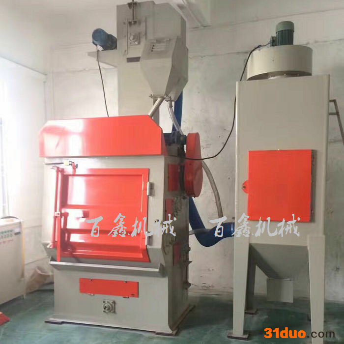 百鑫326 自行车零件喷砂机 电机厂热处理履带式抛丸机** 该机是利用高速回转的叶轮,将弹丸抛向滚筒内连续翻转的工件上,达到清理的目的。它适合用于各行业中的小型铸件、锻件、冲压件、齿轮、弹簧等件的清砂、除锈、去除氧化皮和表面强化,特别适用于怕碰撞的零件的清理及强化。