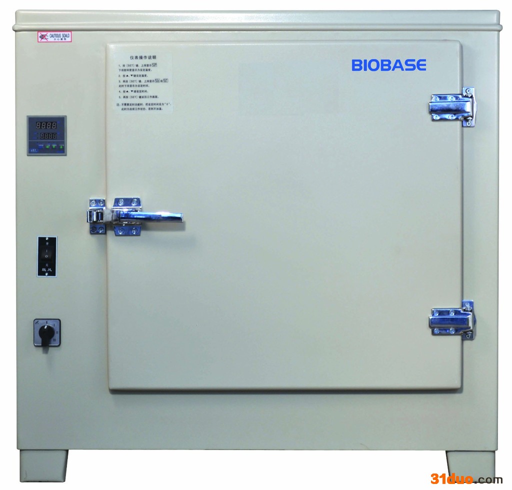 产品简介 该产品供工矿企业、化验室、科研单位等作干燥、烘焙、熔腊、灭菌之用。 产品特点 ●不锈钢货优质冷轧钢板,使用安全、方便,造型新颖、美观 ●设定温度具有保护装置,采用微电脑智能控温仪控制温度设定测定温度均为数字显示,控温可靠 ●进风口开关方便、风道结构合理、工作室内温度均匀 ●自然对流通风式结构,温度均匀性好 ●箱体采用优质薄钢板制成,钢化玻璃内门 ●工作室材料采用优质不锈钢或优质薄钢板制成 ●采用微电脑智能控温仪