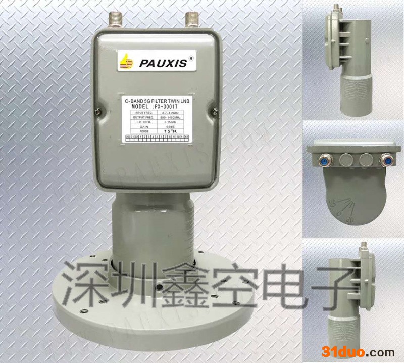 PAUXIS双本振高频头PX-3000 C波段双极化单本振单输出高频头(配三环馈源盘),水平极化和垂直极化互不干扰,高增益,稳定可靠,工程专用。