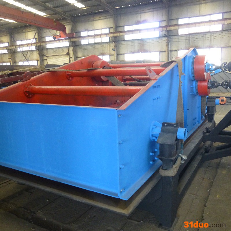 采用双电机驱动自同步,激振器通过绕性联轴器拖动,两组激振器作同步反向旋转时,其偏心块所产生的激振力在平行于电机轴线的方向相互抵消,在垂直于电机轴的方向叠为一合力,从而形成单一的沿振动方向的激振力,其两轴相对于筛面有一倾角,在激振力作用下使筛箱做往复直线运动,物料在筛面上被抛起跳跃向前作直线运动,同时V型设计的筛面结构更佳的实现脱水效果。