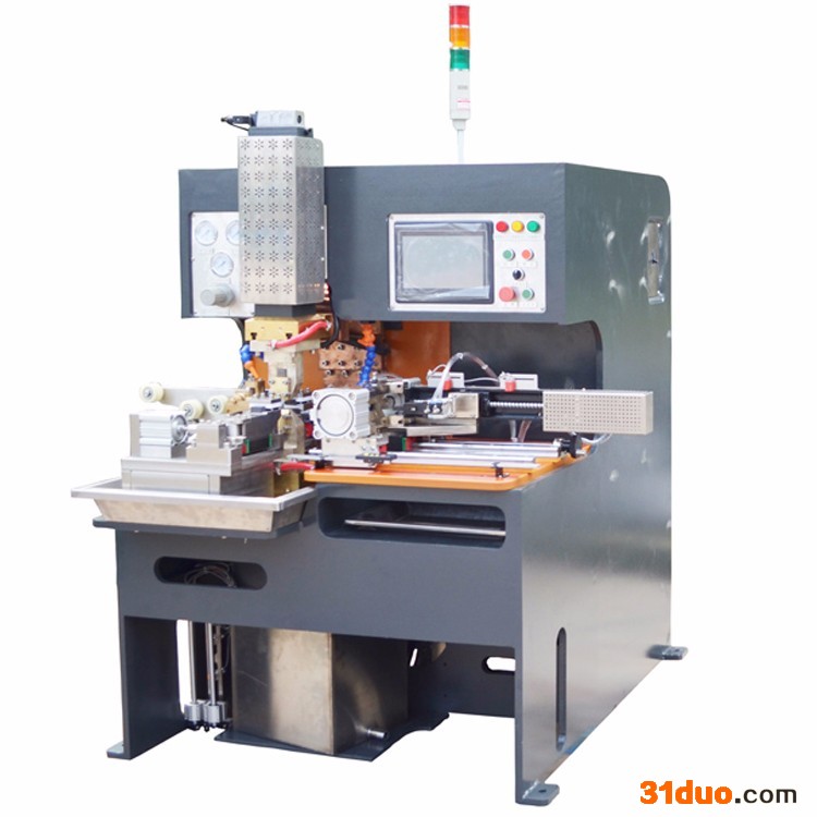 中频铜编织线焊接专机是应用于铜编线的自动焊接成型、自动切断、自动断料的自动化设备。其特有的自动送断料系统能准确实现不同规格的铜编织线的焊接成型切断。生产的产品焊氧化面少,切断面平整美观,质量稳定,广泛应用于各种电器开关生产行业。