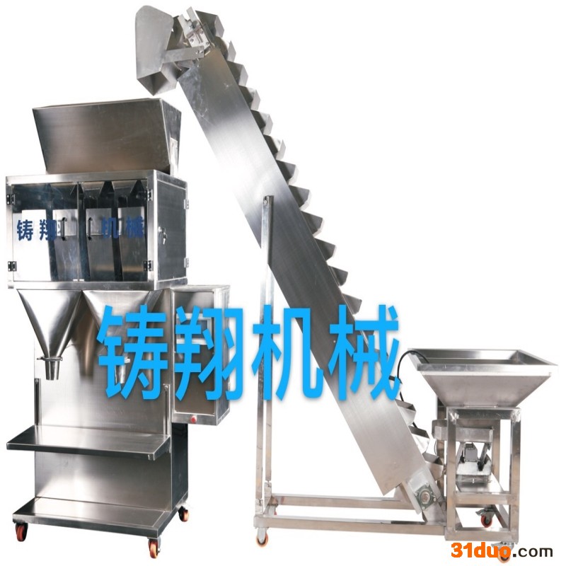 ZX-K2颗粒称重包装机(四斗秤)该机为四斗称重式包装机,四台独立的电子称重系统同时工作,提高了包装速度与误差度。 性能特点: 1、采用高速称重A/D芯片与高速的数字处理器,称重性能比一般的设备大大提升。 2、所有参数具有掉电记忆功能,无需重复设置参数,开机即可工作。 3、开机无需预热,为您节约宝贵的工作时间。 4、整机为不锈钢材质,符合食品、药品等卫生要求。 5、电磁振动下料,快慢给料,4秤交替,保证误差度与包装速度。 主要参数: 速度:1800~2500袋/小时 包装误差:不大于1~3克(和包装物料的颗粒大小有关) 包装规格:5-5000g 电源:AC220V-380V 50Hz(-10%~5%) 功率:2.2KW 主机尺寸:1200*600*2200(mm)